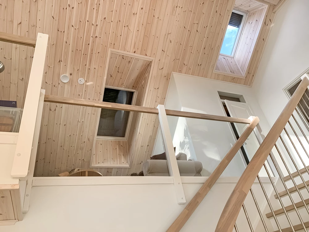 De mer privata rummen återfinns på övervåningen. Här finns tre rymliga sovrum, badrum och allrum. Samt en generös walk-in-closet.