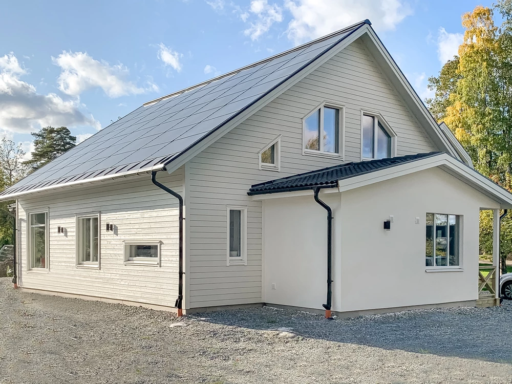 Villa Greta är en villa byggd med sunda och hållbara byggmaterial. Villan har en enkel och kompakt form med en effektiv och öppen planlösning. Ett modernt uttryck med flera stora fönsterpartier. Detta ger en generös känsla samtidigt som det är ekonomiskt och praktiskt. Den centralt placerade trappan skapar närhet mellan våningarna. De omsorgsfullt placerade takfönstren lyser upp husets hjärta och förstärker rymden. En kundanpassad variant av Villa Greta byggdes på Ekerö 2019. Villan har ett helintegrerat solcellstak med batteribackup samt FTX och Bergvärme för bästa komfort.