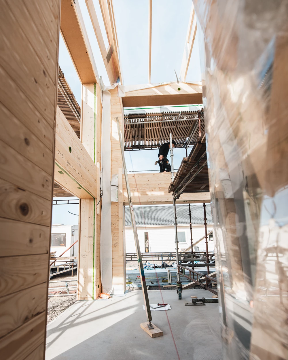 Paret tingade tomten för cirka ett år sedan och har sedan dess upplevt husbyggarprocessen som positiv, framför allt det steget de är i nu där huset ställs på plats. Med bra väder och duktiga snickare så har allt flutit på bra. Vägen fram dit känner de har varit mer känslomässigt blandad med alla val som ska göras.