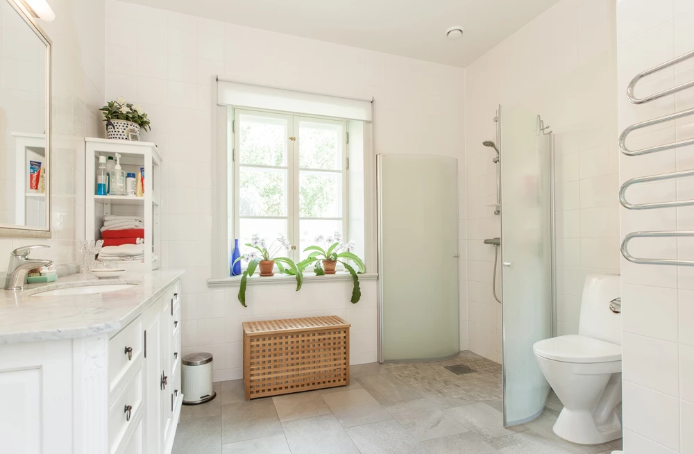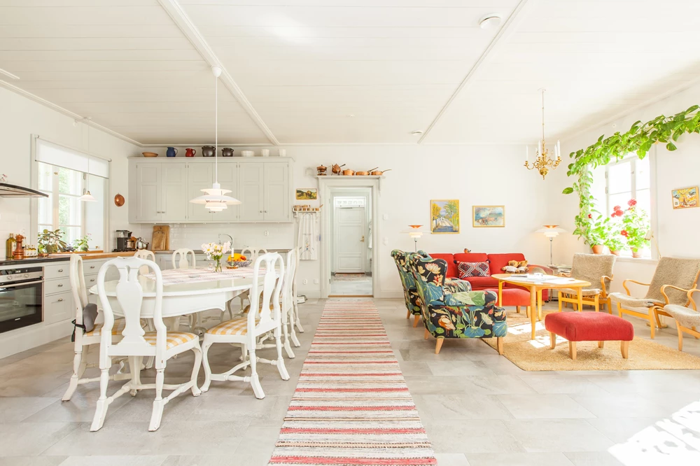 – Men samtidigt har vi förenat den gamla byggnadsstilen med ny teknik för att få till en bra energilösning. Vi har till exempel installerat bergvärme och ventilationen styrs av ett modernt aggregat med FTX-lösning, det vill säga att det har både från- och tilluft för att få bästa möjliga innemiljö. Det innebär också att vi på sommaren kan utnyttja kylan från berghålet till att få en behaglig innetemperatur. Vi har golvvärme i huset och även i det intilliggande uthuset, dit vi transporterar värmen via en kulvert.