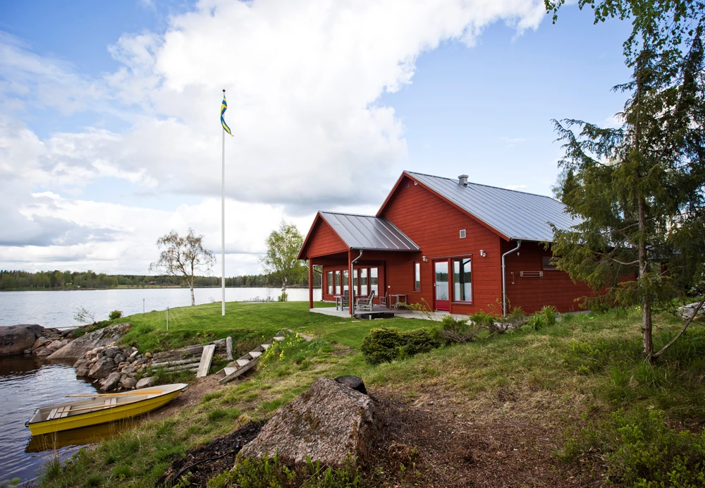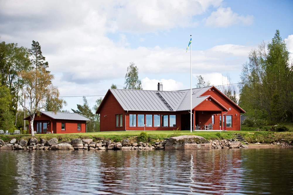 – Tomten låg gudomligt vackert på en udde och hade cirka 80 meter sjöstrand. En sådan chans ville vi inte missa och vi slog till med föresatsen att renovera det befintliga huset. Men när vi lyfte på brädorna insåg vi snart att det skulle vara omöjligt, det var bättre att riva och bygga nytt.