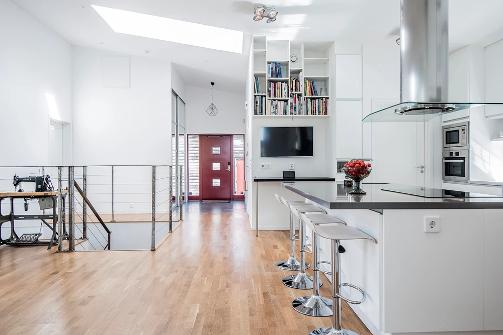 – Vi har i köket också gjort en speciell läxhörna med bänkskiva för att barnen ska kunna göra läxan medan vi lagar maten, utan att de är i vägen. Vi valde också en köksö med barhäng, bra att ha när vi har gäster och vill umgås under matlagningen.